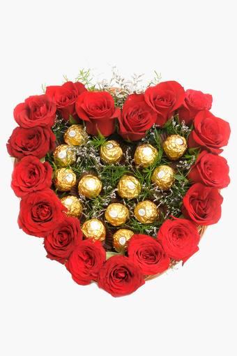 You can send heart shape red roses arrangement with cake, chocolate or teddy bear or greeting card just.